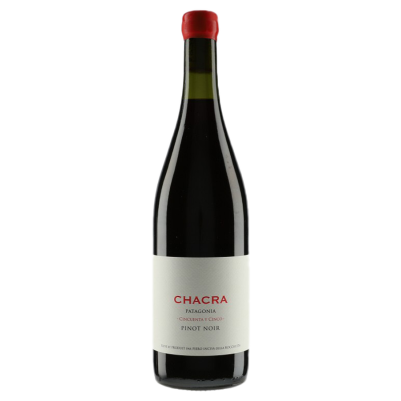 La Bodega Chacra est le projet argentin de Jean-Marc Roulot, réalisé en collaboration avec Piero Incisa della Rocchetta, membre de la famille de Tenuta San Guido, propriétaire de Sassicaia. Le domaine se trouve dans la vallée du Río Negro, en Patagonie argentine. Cincuenta y Cinco provient de vignobles plantés en 1955 qui reposent sur des sols de galets et d’alluvions. Pur Pinot noir fermenté en grappes entières à très basse température. Élevage de 11 mois en cuve béton pour 50% et 50% en fûts de chêne français de 2ème, 3ème et 4ème années. Vin naturel non filtré, biologique et biodynamique.