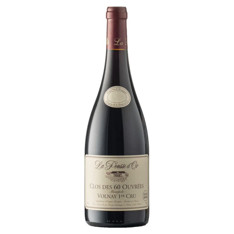 Réparti sur 2,4 hectares, le 1er Cru "Clos des 60 Ouvrées" est situé au Sud de l'appellation Volnay, à la limite de Meursault. Détenu exclusivement par le Domaine de la Pousse d'Or, en monopole, la parcelle est entourée par des murs de pierre, formant un clos, comme son nom pouvait le laisser penser… Les jus voient 15 mois d’élevage en fûts de chêne renouvelé à 30% en bois neuf.