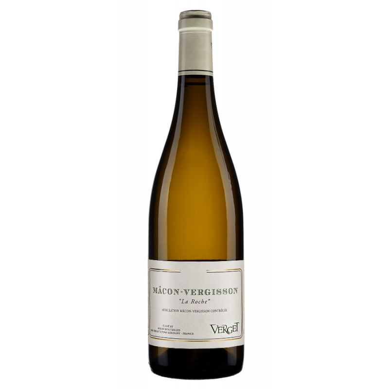 La maison Verget est co-gérée par Jean-Marie Guffens et Julien Desplans (formé à La Romanée-Conti) qui associent leurs expertises en cave sur des raisins vendangés et sélectionnés avec le plus grand soin. Les cuves inox horizontales utilisées pour les fermentations ont le même ratio lies/vin que les fûts de chêne. Le Mâcon-Vergisson "Sur la Roche" est issu d’un terroir très calcaire, plus connu en Pouilly qu’en Mâcon. Vinification en fûts neufs renouvelés à 25 %, fermentations longues puis élevage de 6 mois.