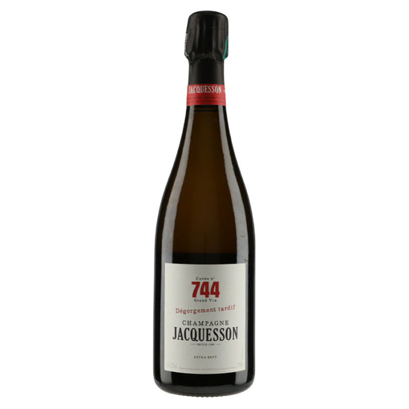La "Cuvée 744" DT (Dégorgement Tardif) est issue d’une base de récolte 2016 (55% Grande Vallée de la Marne, 45% Côte des Blancs). Assemblage de 70% de 2016 et 30% de vins de réserve. Élevage prolongé de 92 mois sur lies sous bouchon liège. Dosage à 2 gr/l, dégorgé en février 2025.